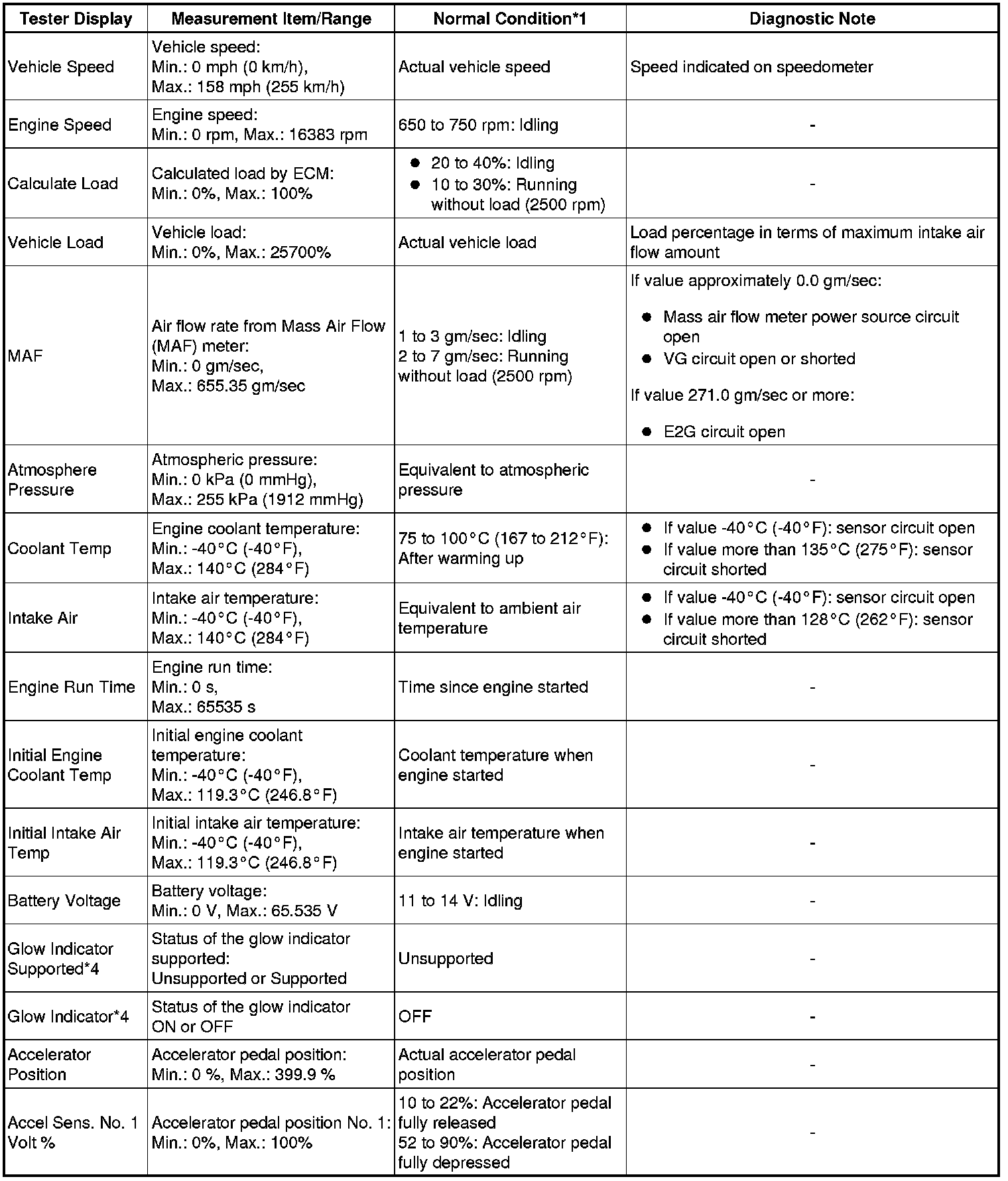 * *3: Excluding throttle valve operating percentage due to Idle Speed Control (ISC).