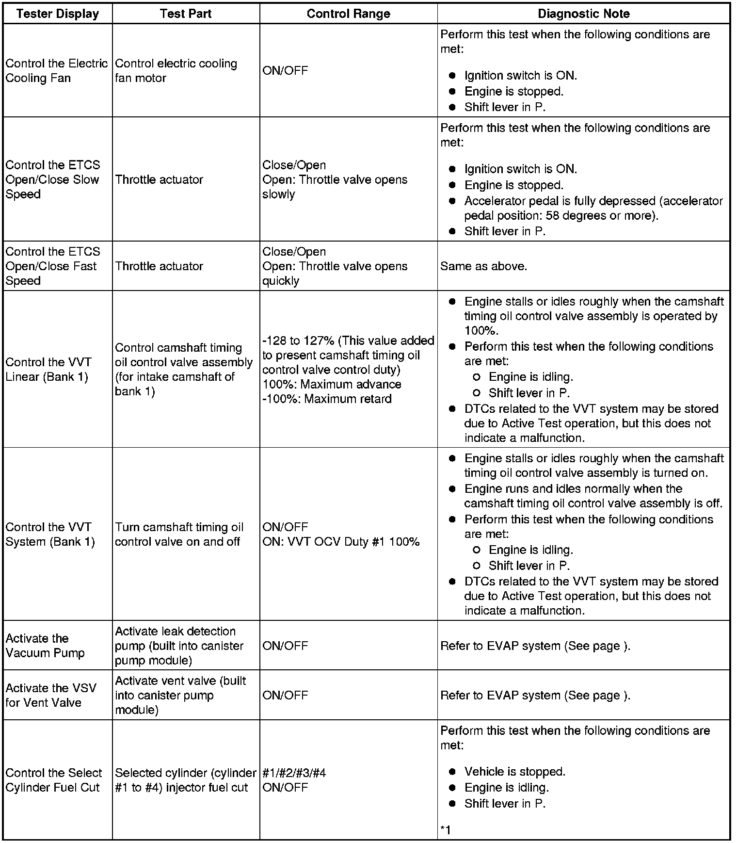 * *1: If no idling conditions are specified, the shift lever should be in N (neutral) or P, and the A/C switch and all accessory switches should be OFF.