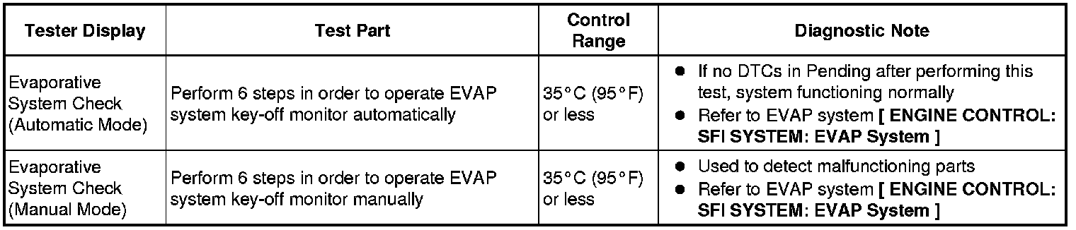 (e) Perform the System Check by referring to the table below.