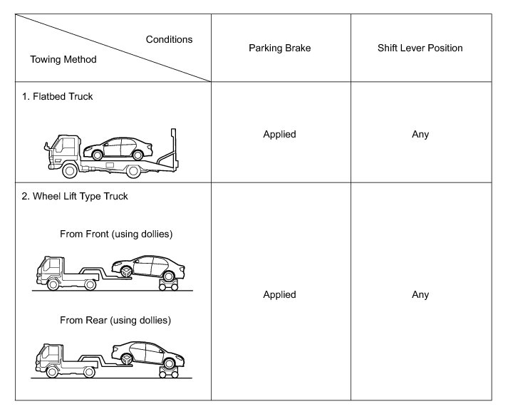 * If the vehicle is towed facing rearward with the front wheels on the ground, the drivetrain may overheat and be damaged.