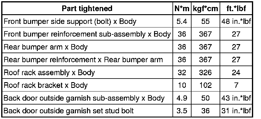 SPECIFICATIONS: EXTERIOR PANELS / TRIM: TORQUE SPECIFICATIONS