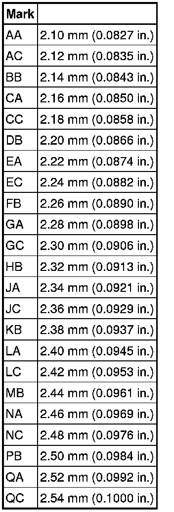 Thrust Washer Thickness (Backlash Adjust)