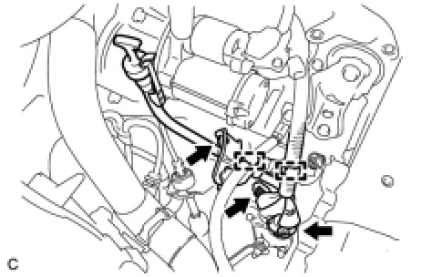 (c) Connect the transmission wire connector, park/ neutral position switch connector and 2 wire harness clamps.