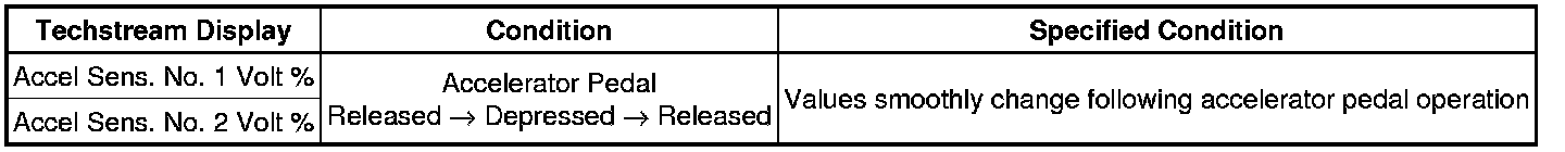 * Under normal conditions, the Accelerator Position value changes in response to the Accel Sens. No. 1 Volt % value. For more information on the numerical values, refer to the Data List Data List / Active List.