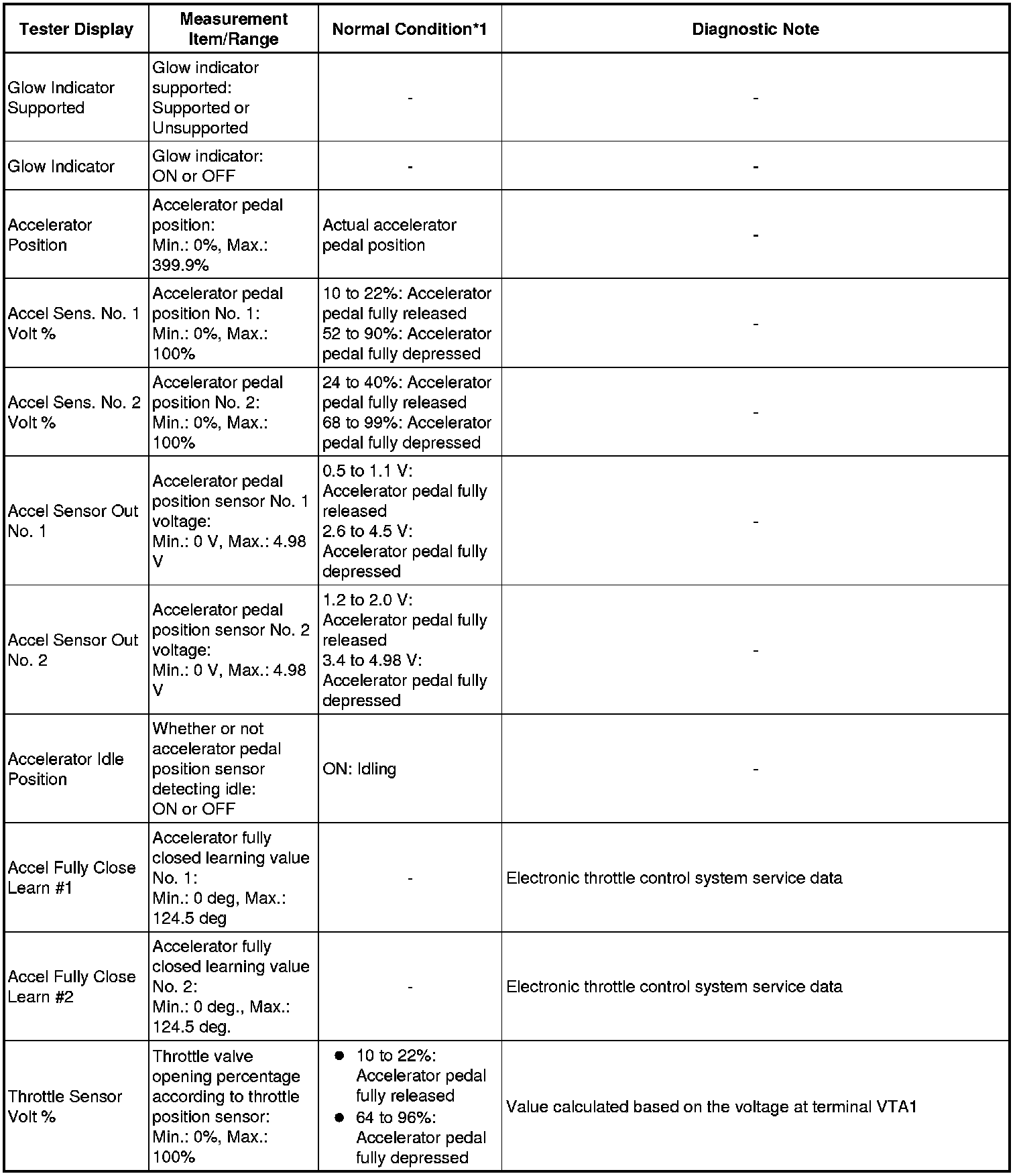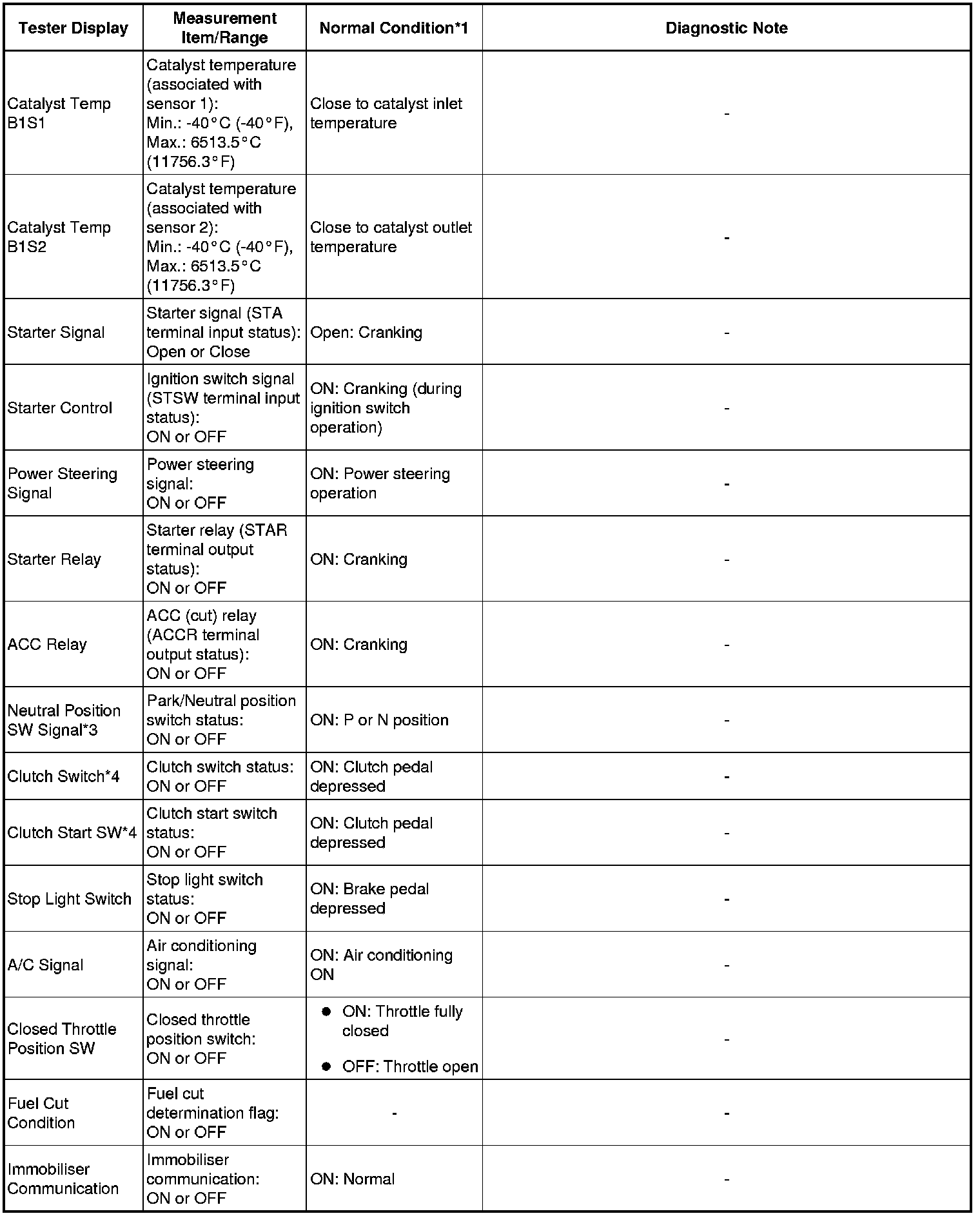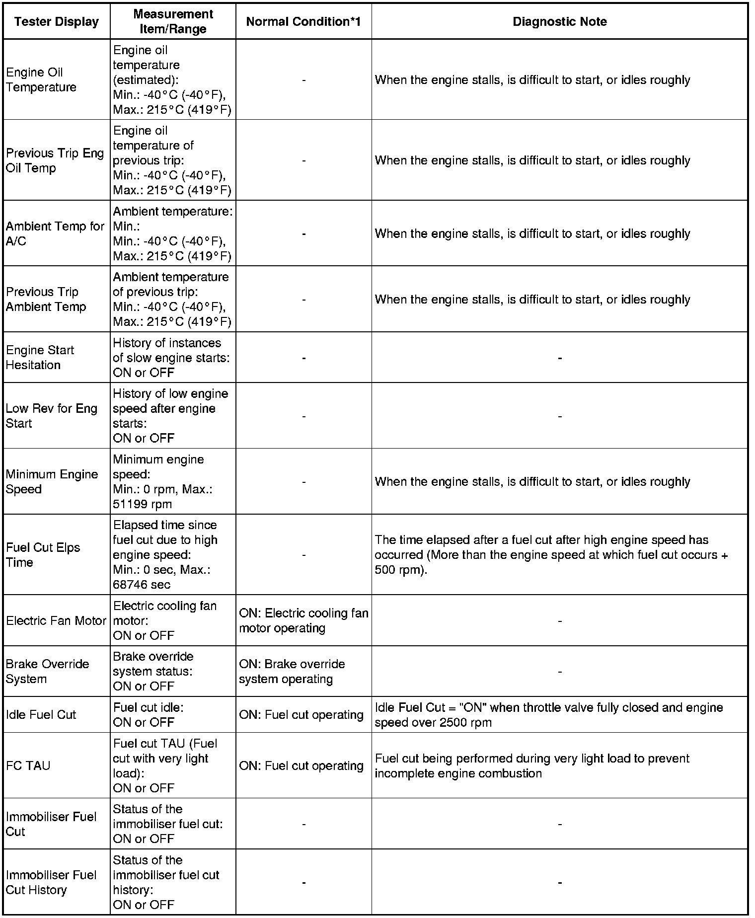 * *1: If no idling conditions are specified, the shift lever should be in N (neutral) or P, and the A/C switch and all accessory switches should be off.