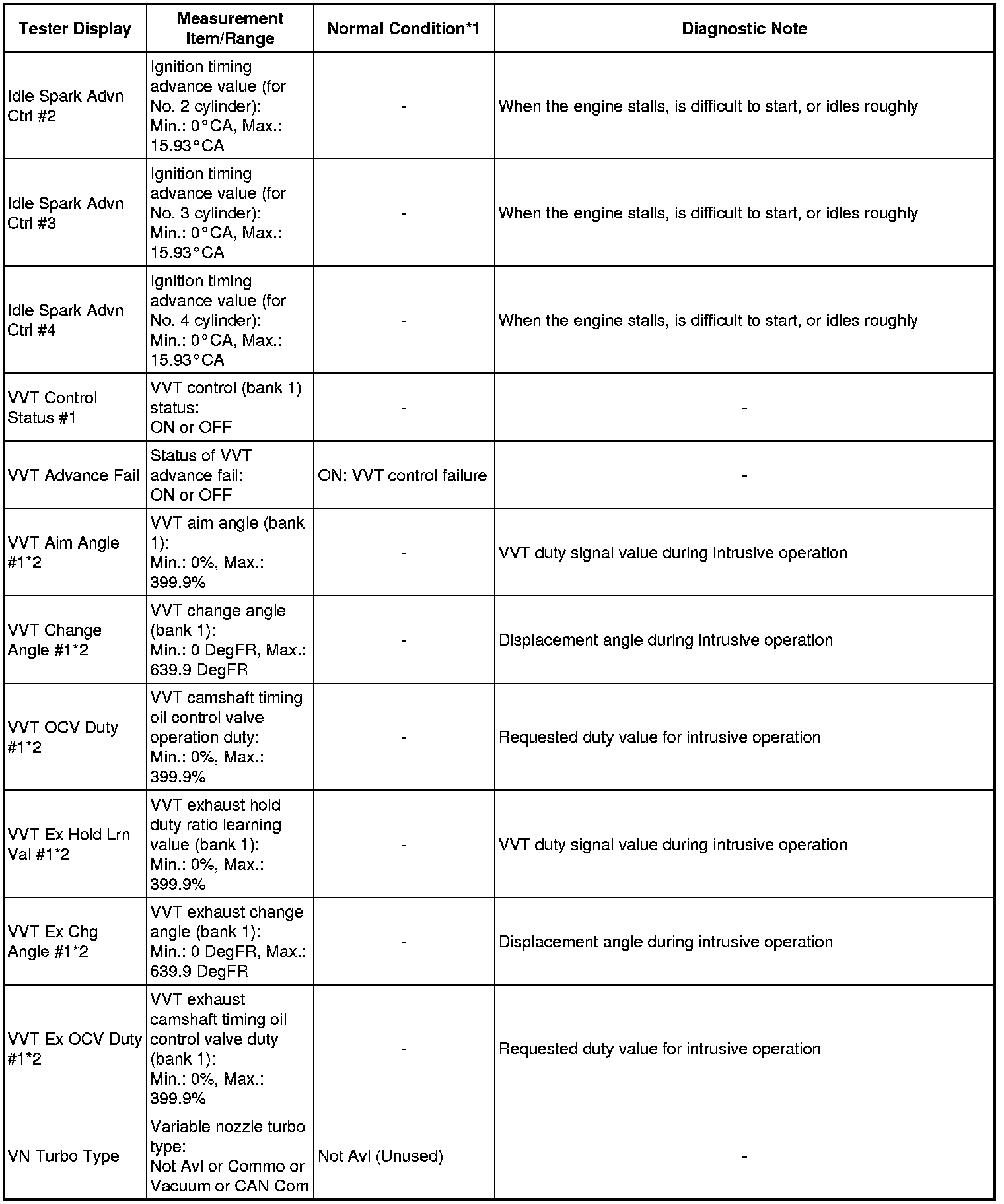 * *2: Values are only displayed when performing the Active Tests: Control the VVT System (Bank 1), Control the VVT Linear (Bank1) and Control the Exhaust Liner (Bank 1). For other Active Tests, the value will be 0.