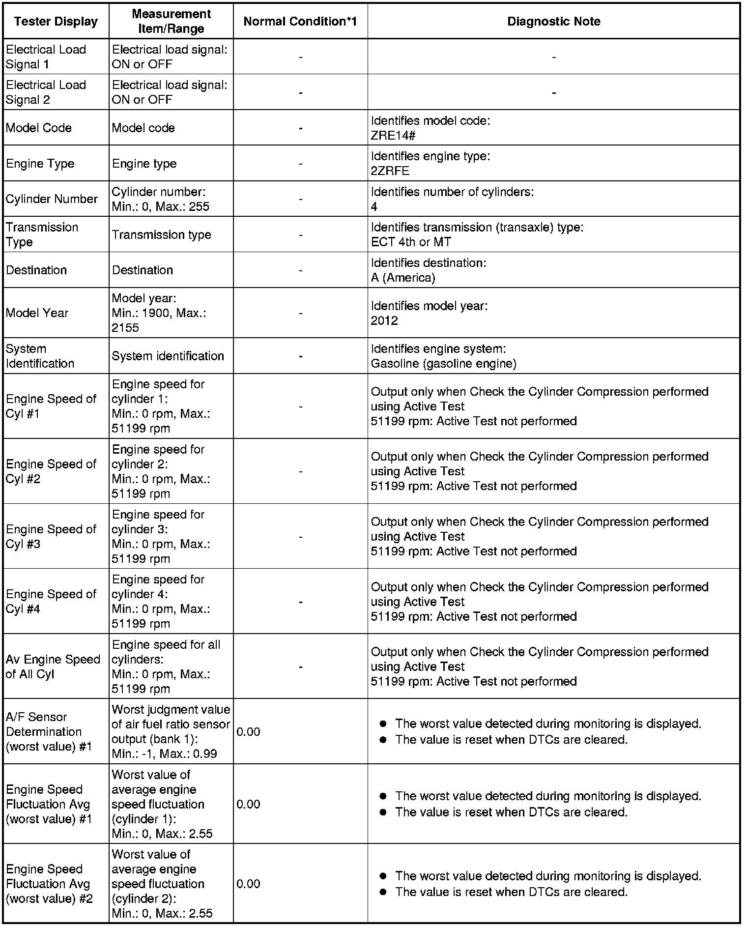 *2: When cranking the engine, each cylinder measures the engine speed.
