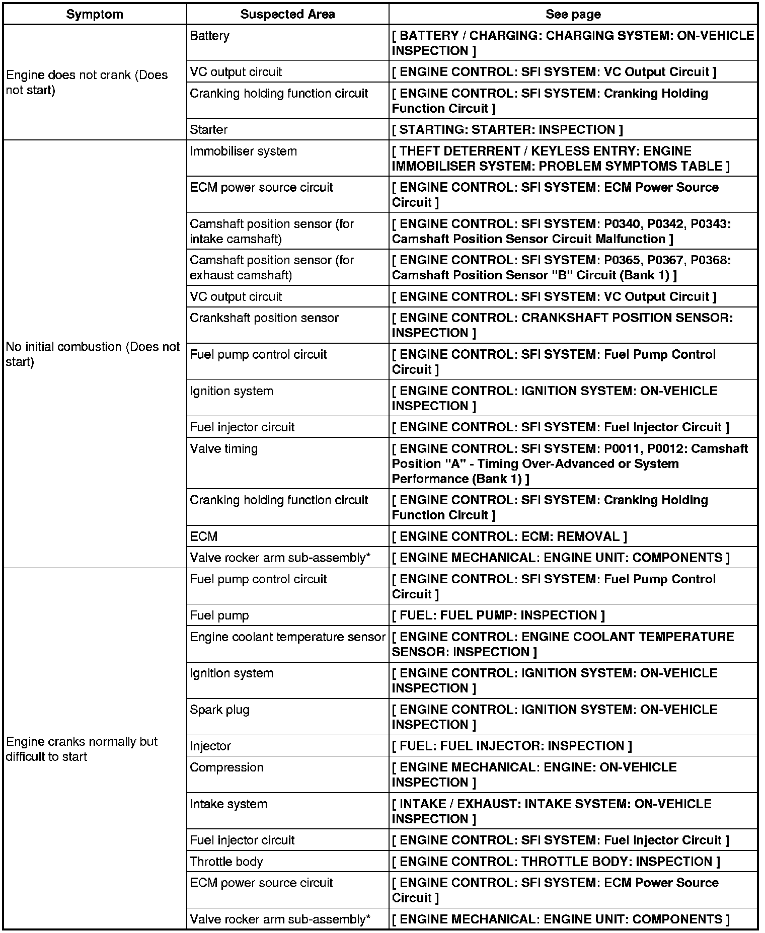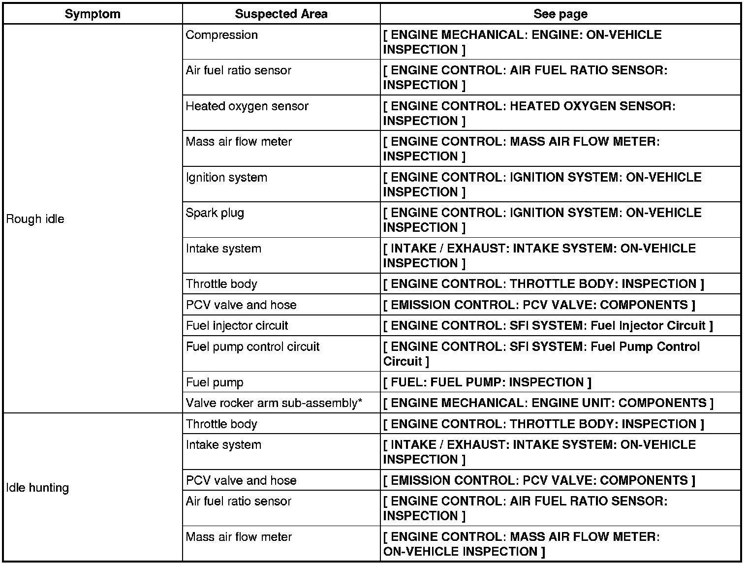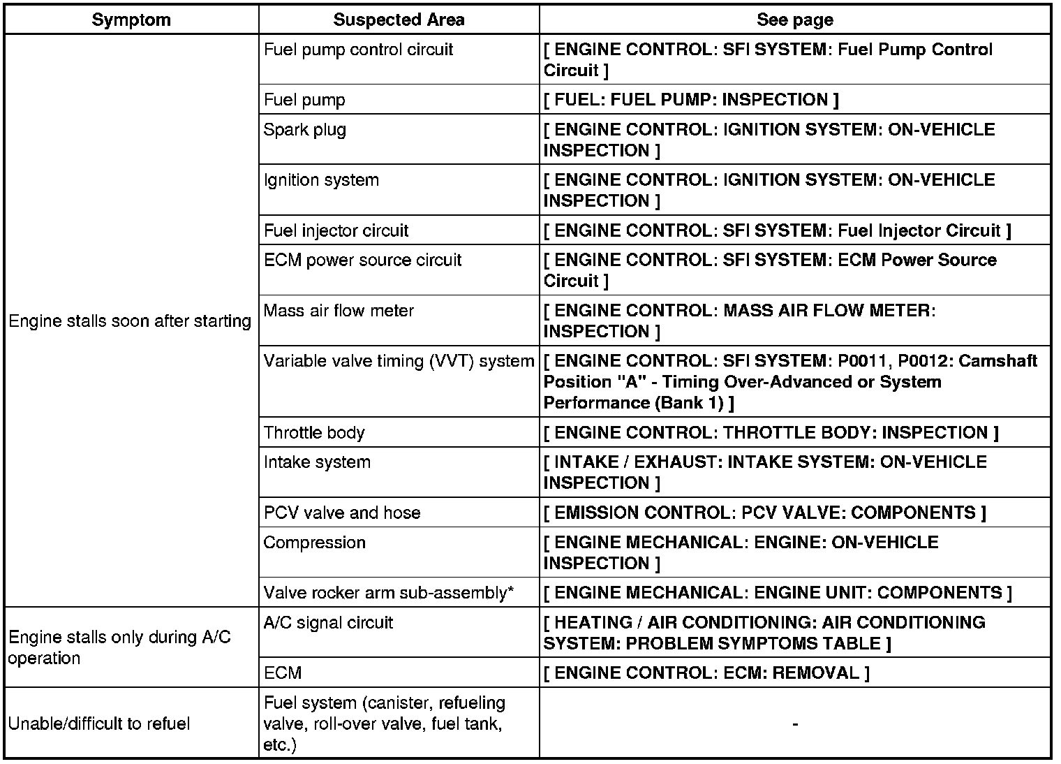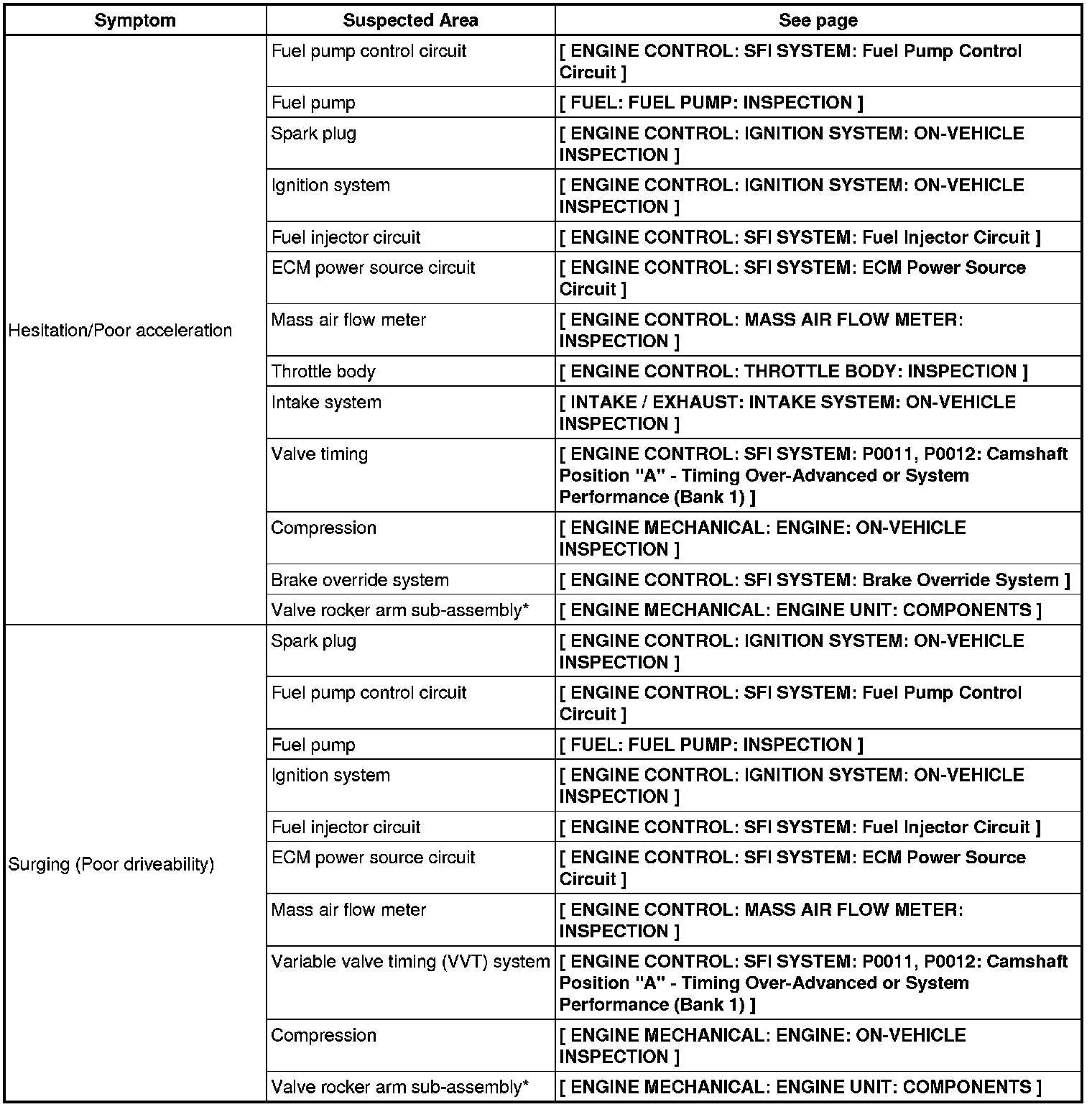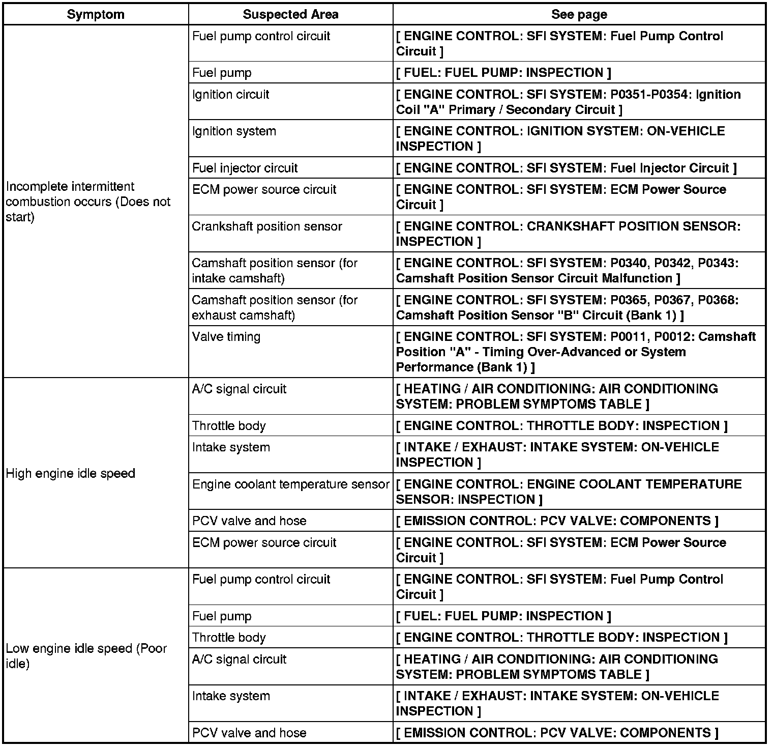 2ZR-FE ENGINE CONTROL: SFI SYSTEM: PROBLEM SYMPTOMS TABLE