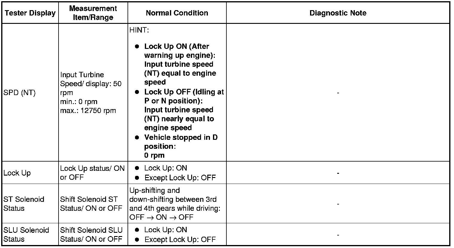 *: "Activate the Solenoid (SLT)" in the Active Test is performed to check the line pressure changes by connecting the SST to the automatic transaxle, which is used in the HYDRAULIC TEST Hydraulic Test as well.