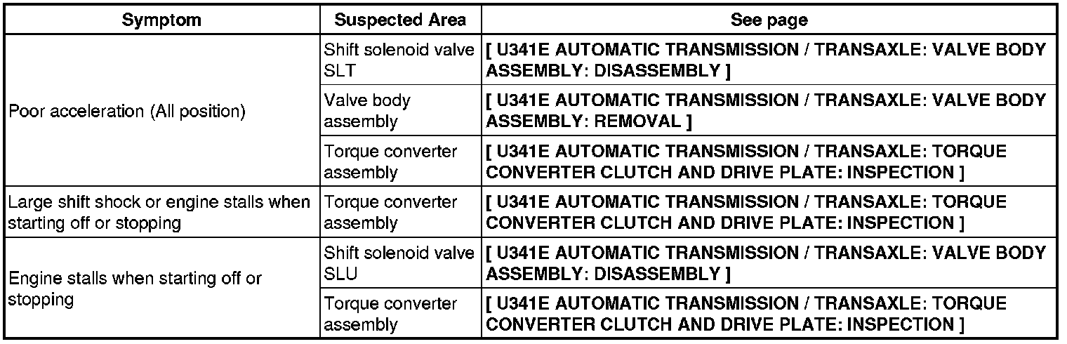U341E AUTOMATIC TRANSMISSION / TRANSAXLE: AUTOMATIC TRANSAXLE SYSTEM: PROBLEM SYMPTOMS TABLE