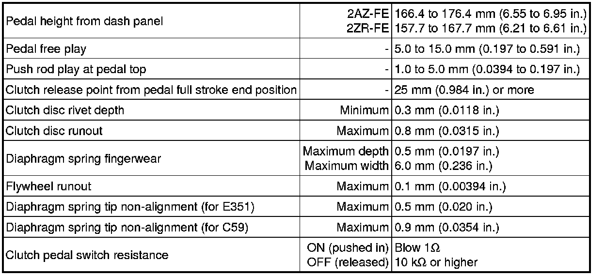 SPECIFICATIONS: CLUTCH: SERVICE DATA