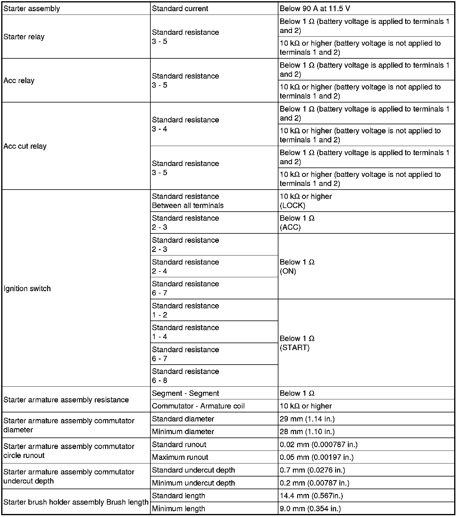 SPECIFICATIONS: 2ZR-FE STARTING: SERVICE DATA