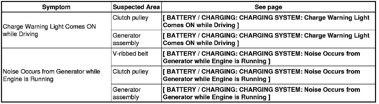 2ZR-FE BATTERY / CHARGING: CHARGING SYSTEM: PROBLEM SYMPTOMS TABLE