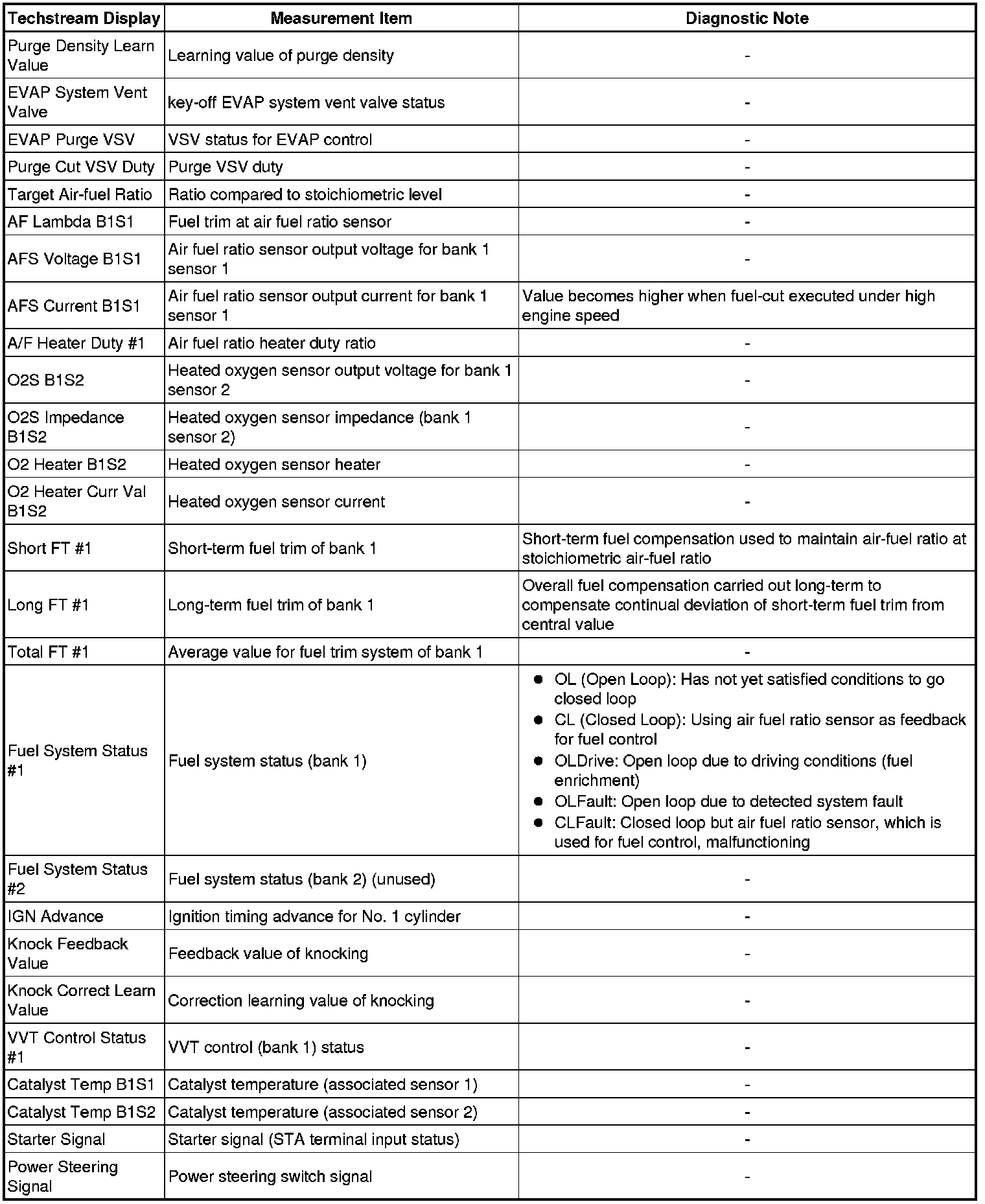 * The ECM records engine conditions in the form of freeze frame data every 0.5 seconds. Using the Techstream, 5 separate sets of freeze frame data can be checked.