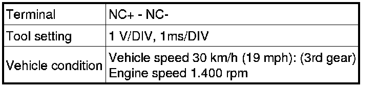 In the table, first follow the information under "Condition". Look under "Terminal No. (Symbols)" for the terminals to inspected. The standard voltage between the terminals is shown under "Specified Condition".