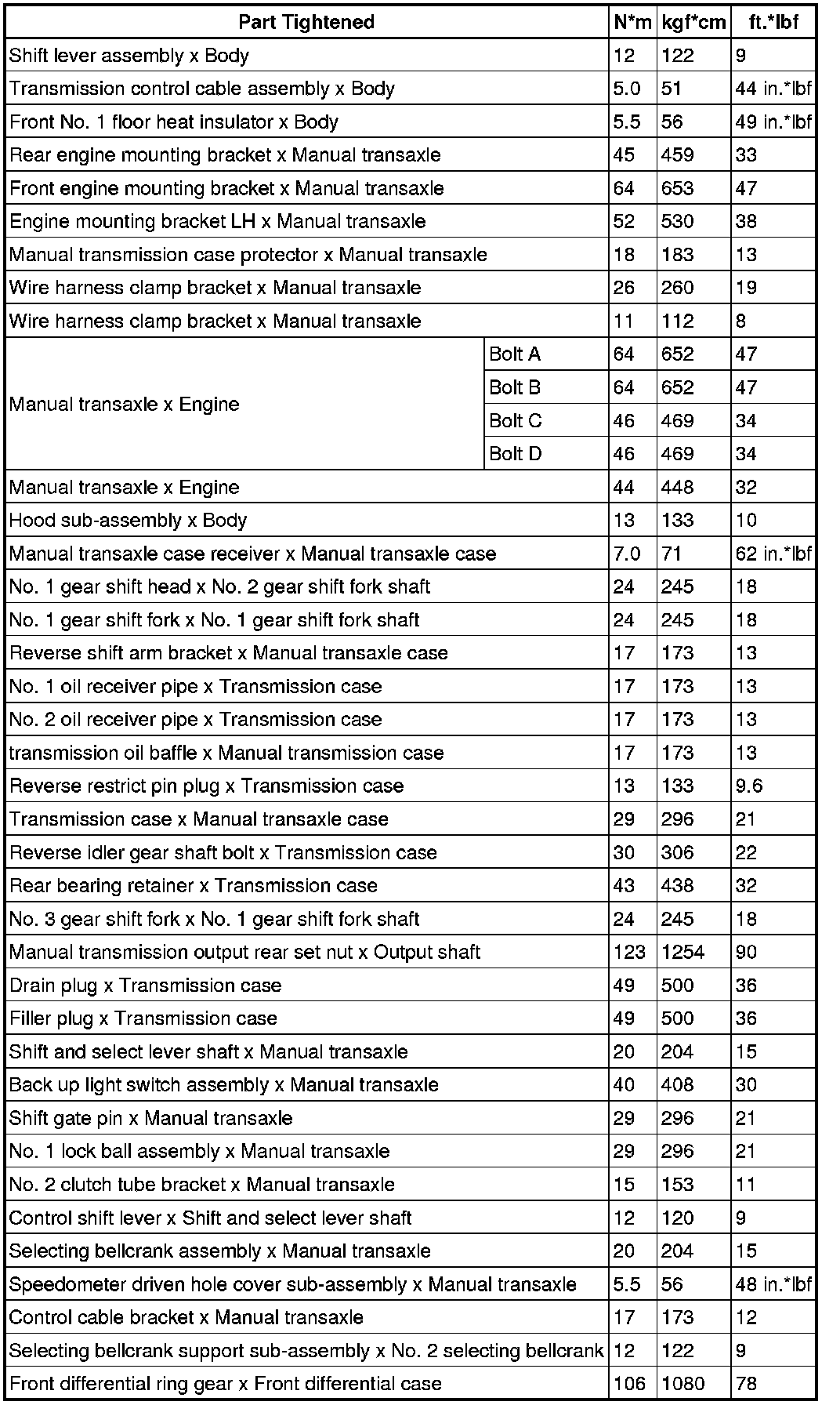 SPECIFICATIONS: E351 MANUAL TRANSMISSION / TRANSAXLE: TORQUE SPECIFICATIONS