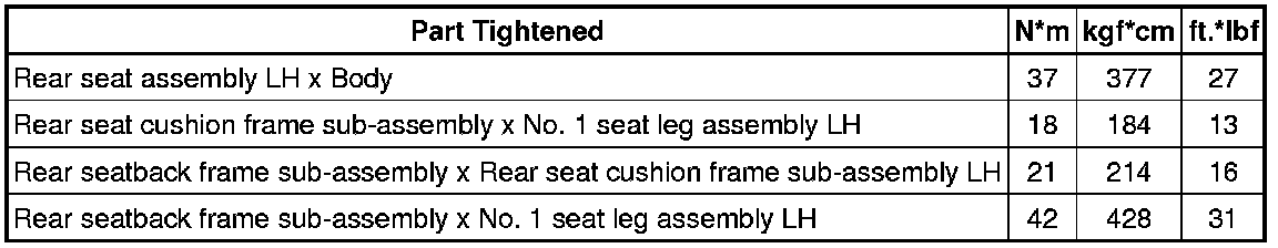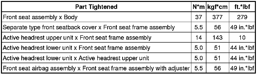 SPECIFICATIONS: SEAT: TORQUE SPECIFICATIONS
