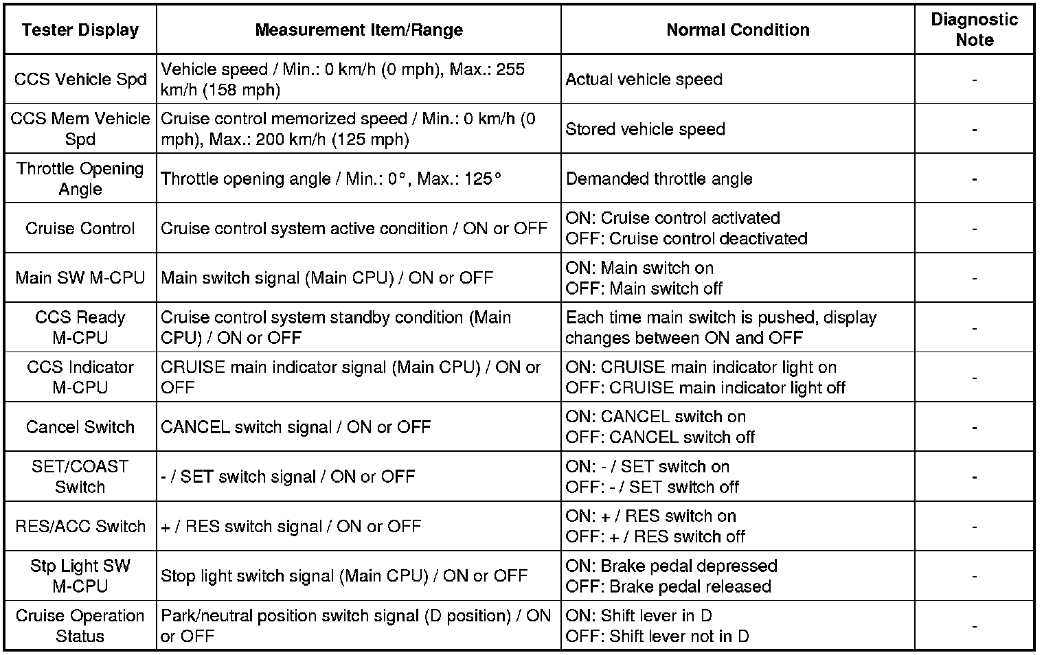 CRUISE CONTROL: CRUISE CONTROL SYSTEM: DATA LIST / ACTIVE TEST