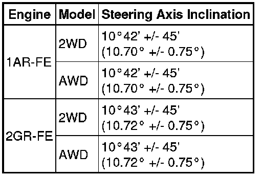 3. INSPECT CAMBER, CASTER AND STEERING AXIS INCLINATION