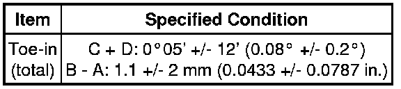 The body and suspension may be damaged if the camber is not correctly adjusted according to the above table.
