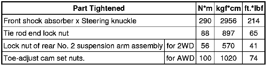 SPECIFICATIONS: ALIGNMENT / HANDLING DIAGNOSIS: TORQUE SPECIFICATIONS