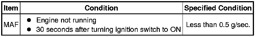 * Perform the mass air flow meter inspection according to the procedure below.