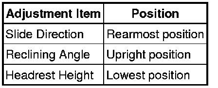 (2) Adjust the seat position according to the table below.
