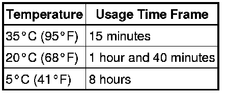 After cutting off the tip, use all adhesive within the time described in the table below.