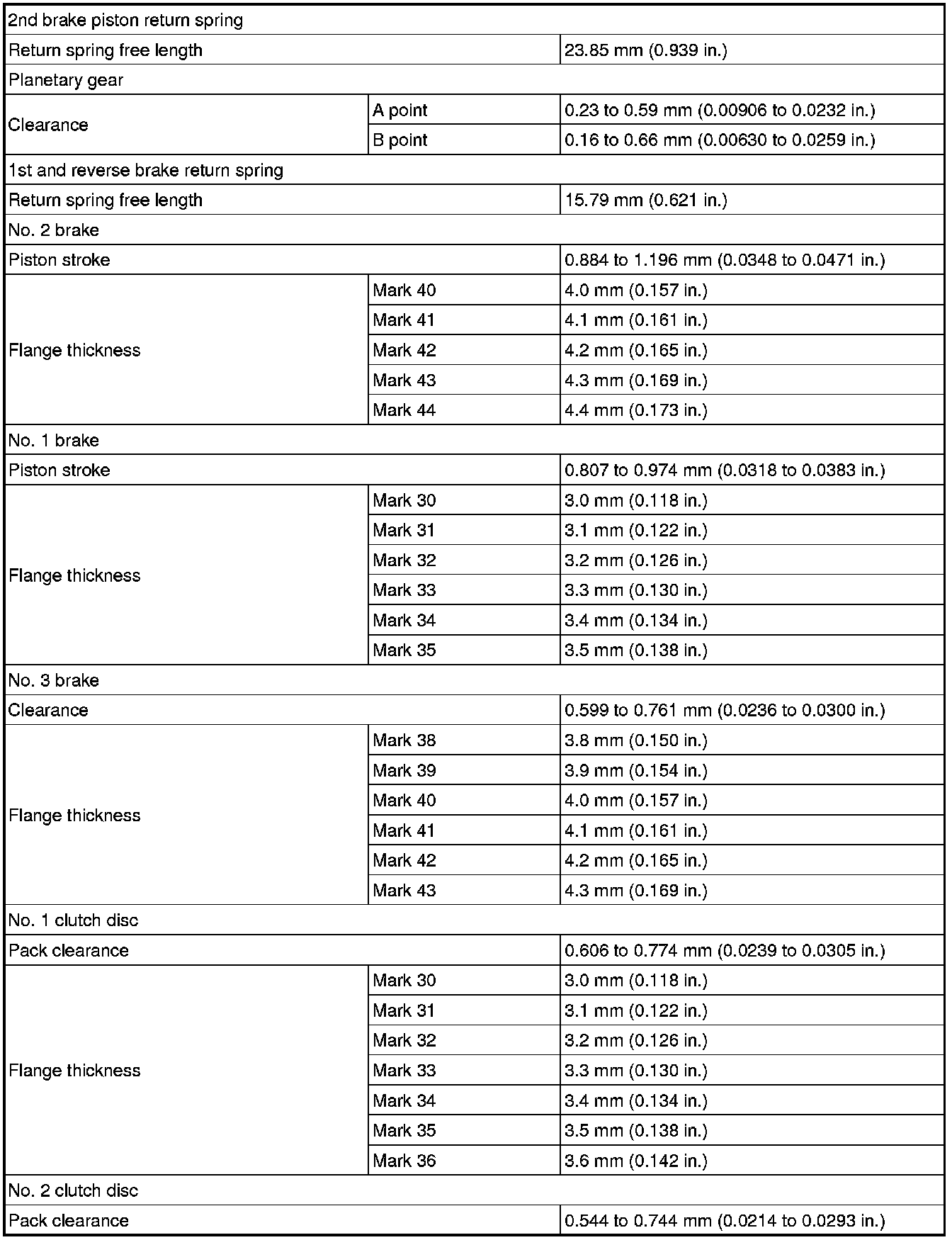 SPECIFICATIONS: U660F AUTOMATIC TRANSMISSION / TRANSAXLE: SERVICE DATA