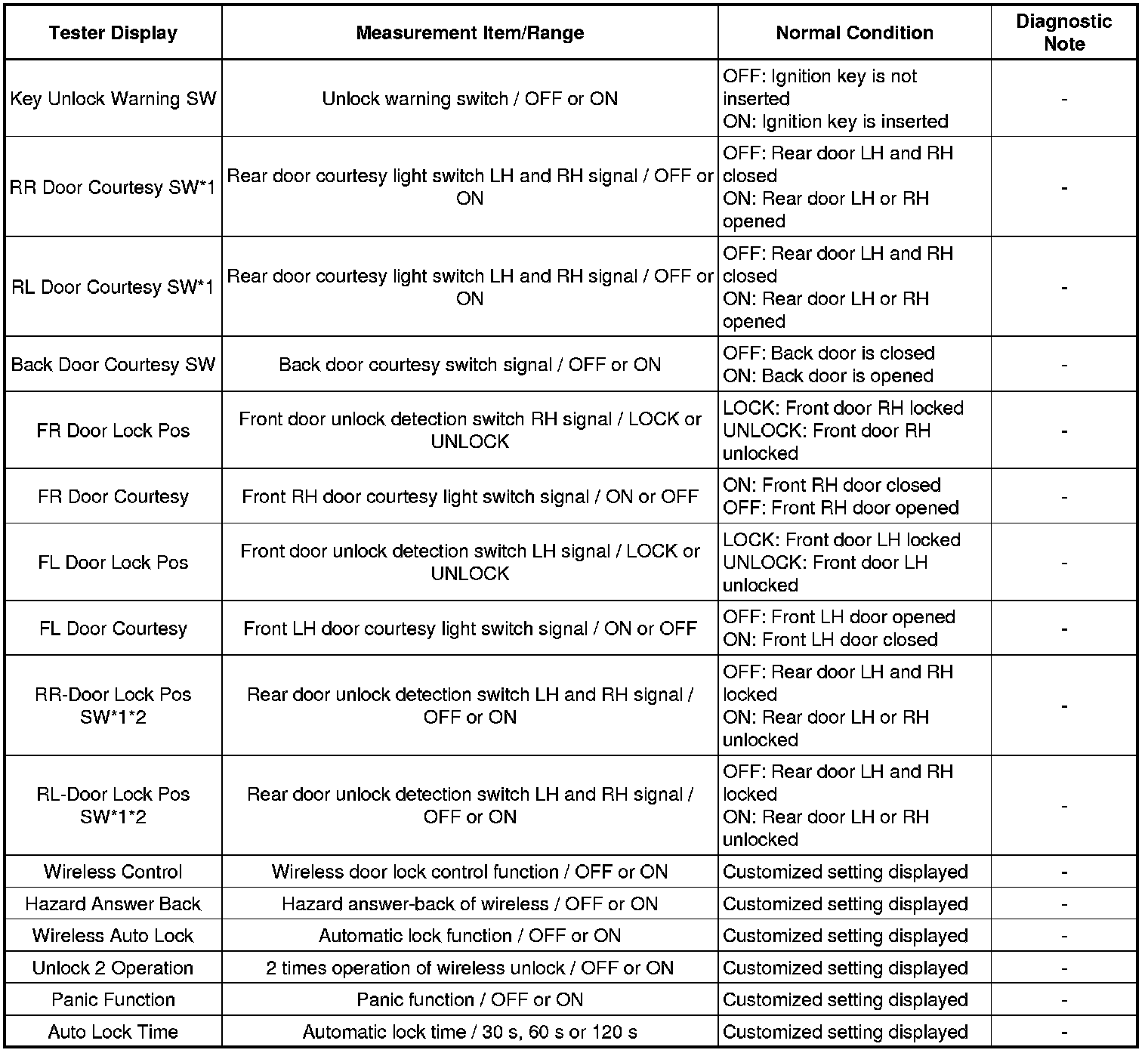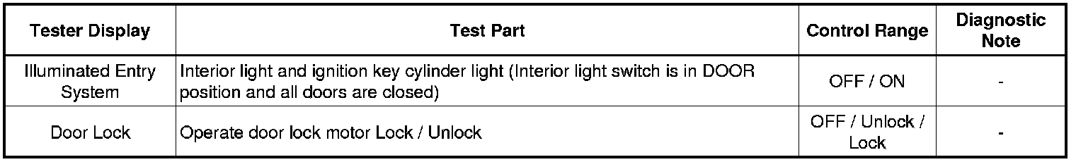DOOR LOCK: WIRELESS DOOR LOCK CONTROL SYSTEM (for Hatchback): DATA LIST / ACTIVE TEST