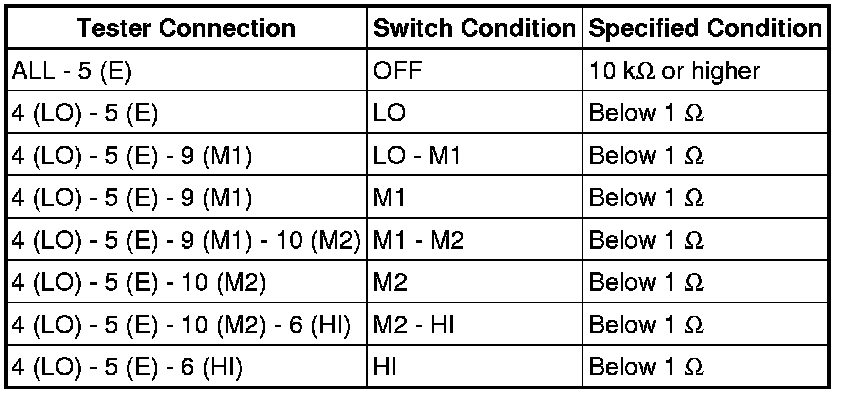 (1) Measure the resistance according to the value(s) in the table below.