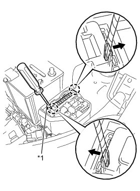 (a) Using a screwdriver with its tip wrapped in protective tape, disengage the 2 claws and disconnect the No. 1 integration relay.