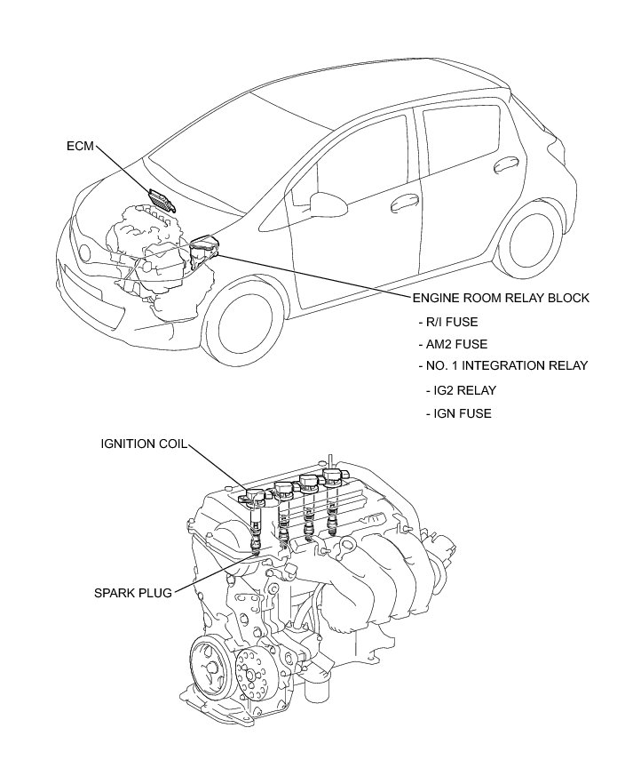 1NZ-FE ENGINE CONTROL: IGNITION SYSTEM (for Hatchback): PARTS LOCATION