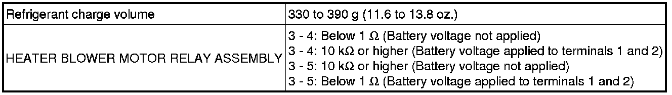 SPECIFICATIONS: HEATING / AIR CONDITIONING (for Hatchback): SERVICE DATA