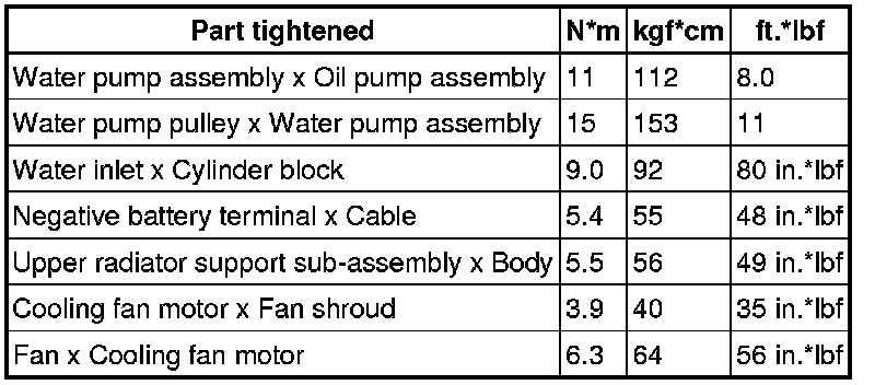 SPECIFICATIONS: 1NZ-FE COOLING (for Hatchback): TORQUE SPECIFICATIONS