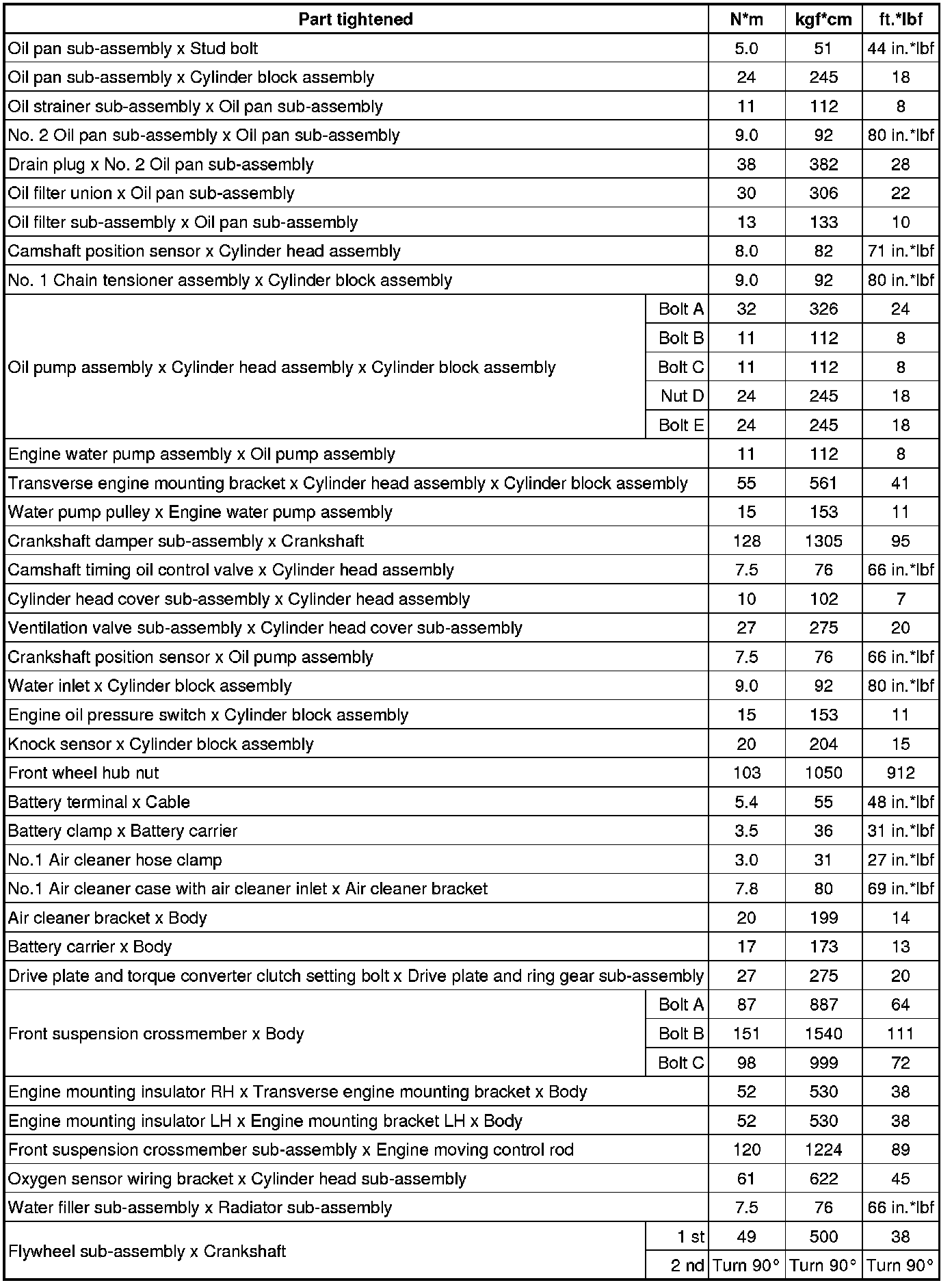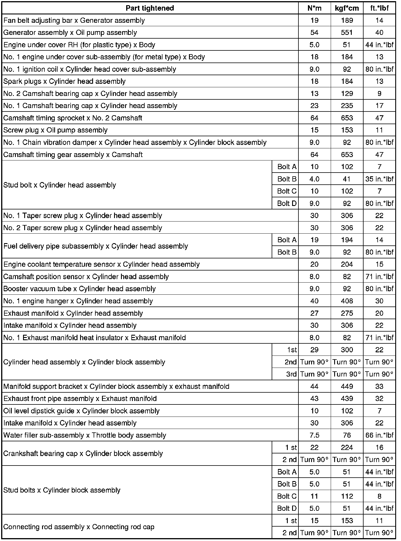 SPECIFICATIONS: 1NZ-FE ENGINE MECHANICAL (for Hatchback): TORQUE SPECIFICATIONS