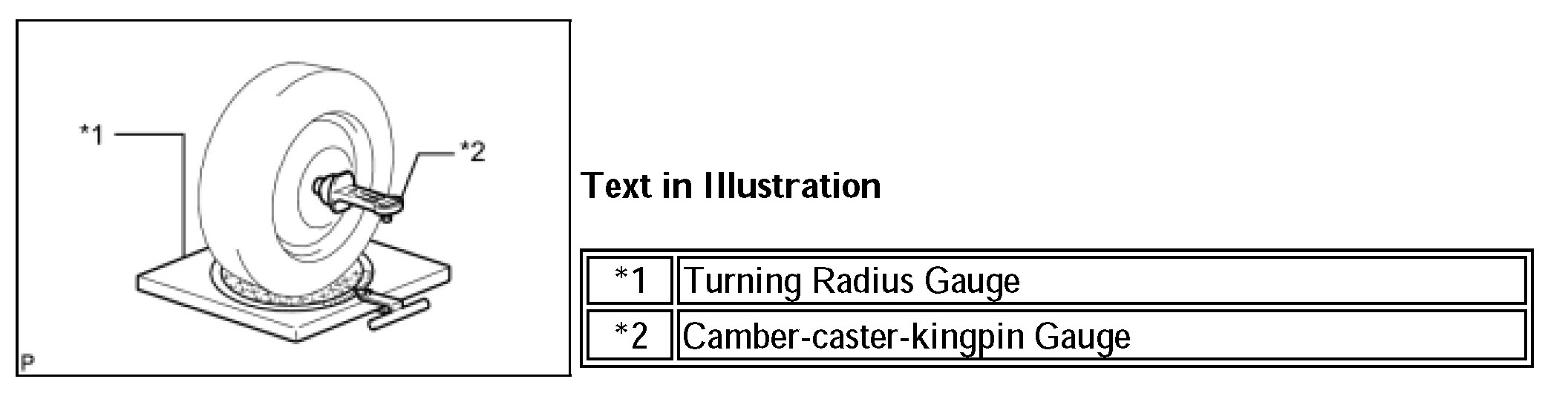 a. Install a camber-caster-kingpin gauge and place the front wheels on the center of a turning radius gauge.