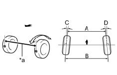 f. Measure the distance between the tread center marks on the front side of the rear wheels (dimension A).
