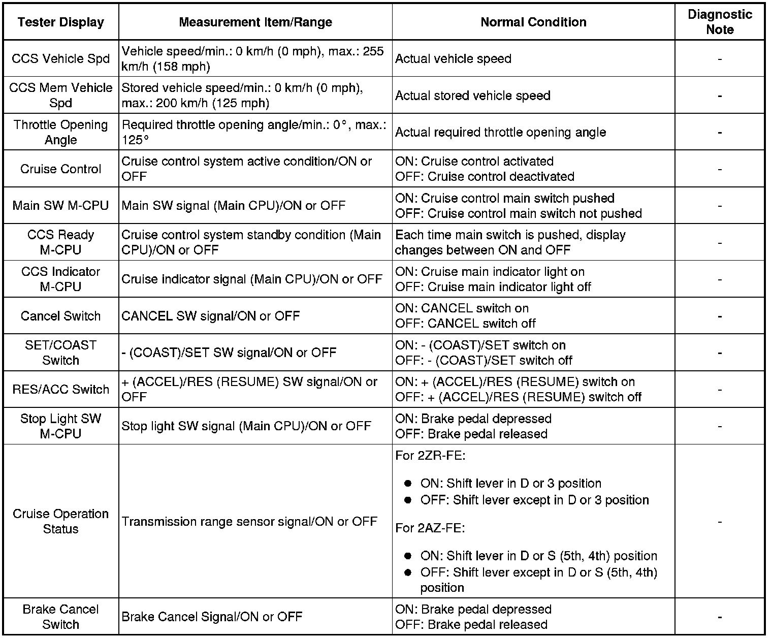 CRUISE CONTROL: CRUISE CONTROL SYSTEM: DATA LIST / ACTIVE TEST; 2013 MY Corolla [07/2012 -]