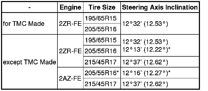 Steering Axis Inclination (Unloaded Vehicle):