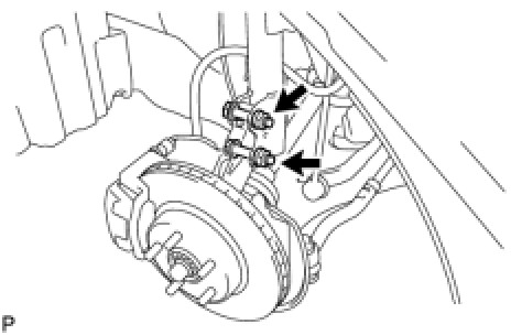 (b) Remove the bolt and separate the front flexible hose from the front shock absorber.