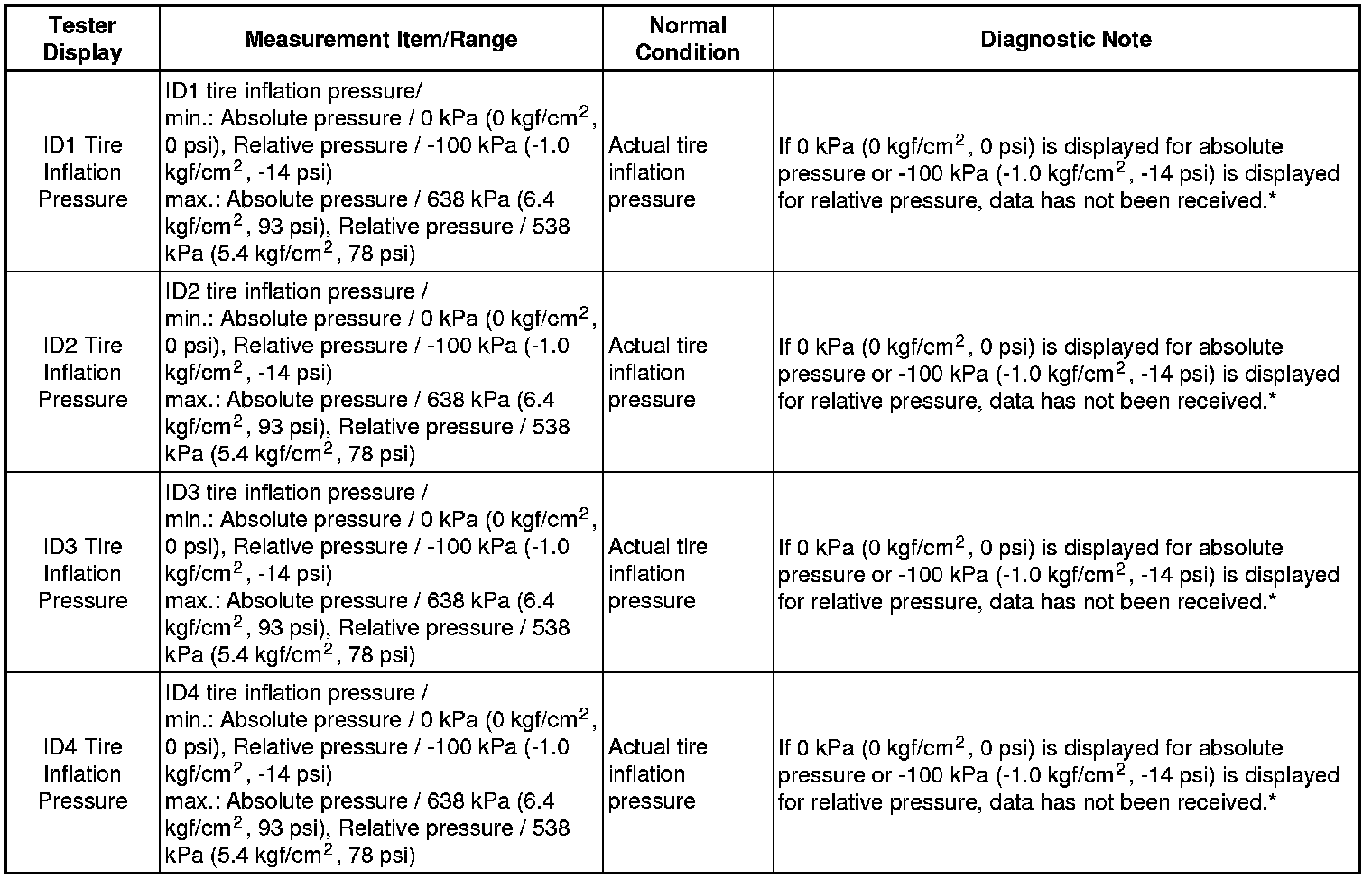 * The initialization is completed when the "ID Tire Information Pressure" display shows the correct pressures.