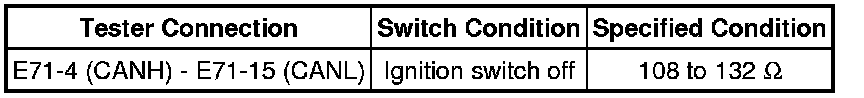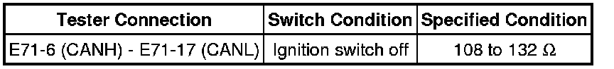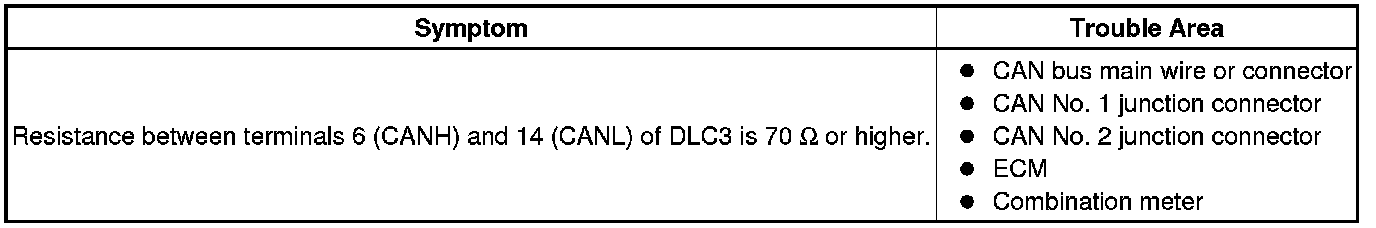 There may be an open circuit in the CAN main wire and/or the DLC3 branch wire when the resistance between terminals 6 (CANH) and 14 (CANL) of the DLC3 is 70 Ohms or higher.