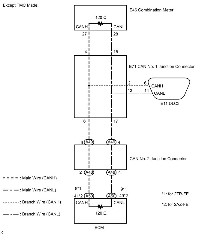C -- CHECK FOR OPEN IN CAN BUS MAIN WIRE (CAN NO. 2 JUNCTION CONNECTOR - ECM)