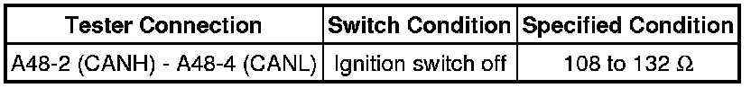 When the measured value is 132 Ohms or higher and a CAN communication system diagnostic trouble code is output, there may be a fault besides disconnection of the DLC3 branch wire. For that reason, troubleshooting should be performed again from How to Proceed with Troubleshooting How to Proceed With Troubleshooting after repairing the trouble area.