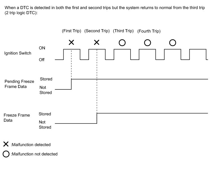 * With previous pending freeze frame data stored, if pending freeze frame data is newly stored when a 2 trip DTC is detected in the first trip, the old freeze frame data will be replaced with the new one of the newly detected DTC in the next trip.