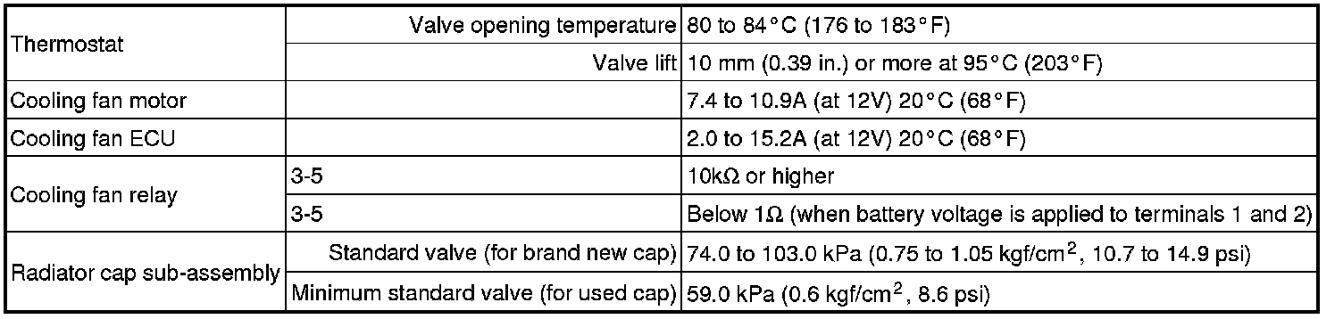 SPECIFICATIONS: 2ZR-FE COOLING: SERVICE DATA; 2013 MY Corolla [07/2012 -]