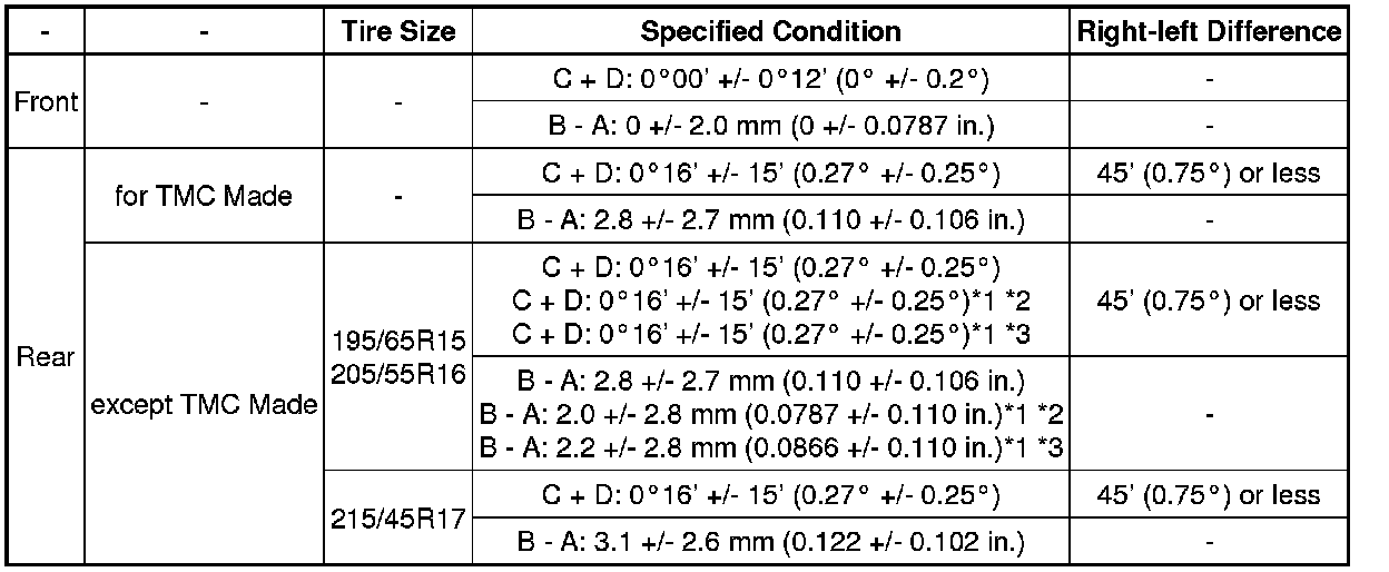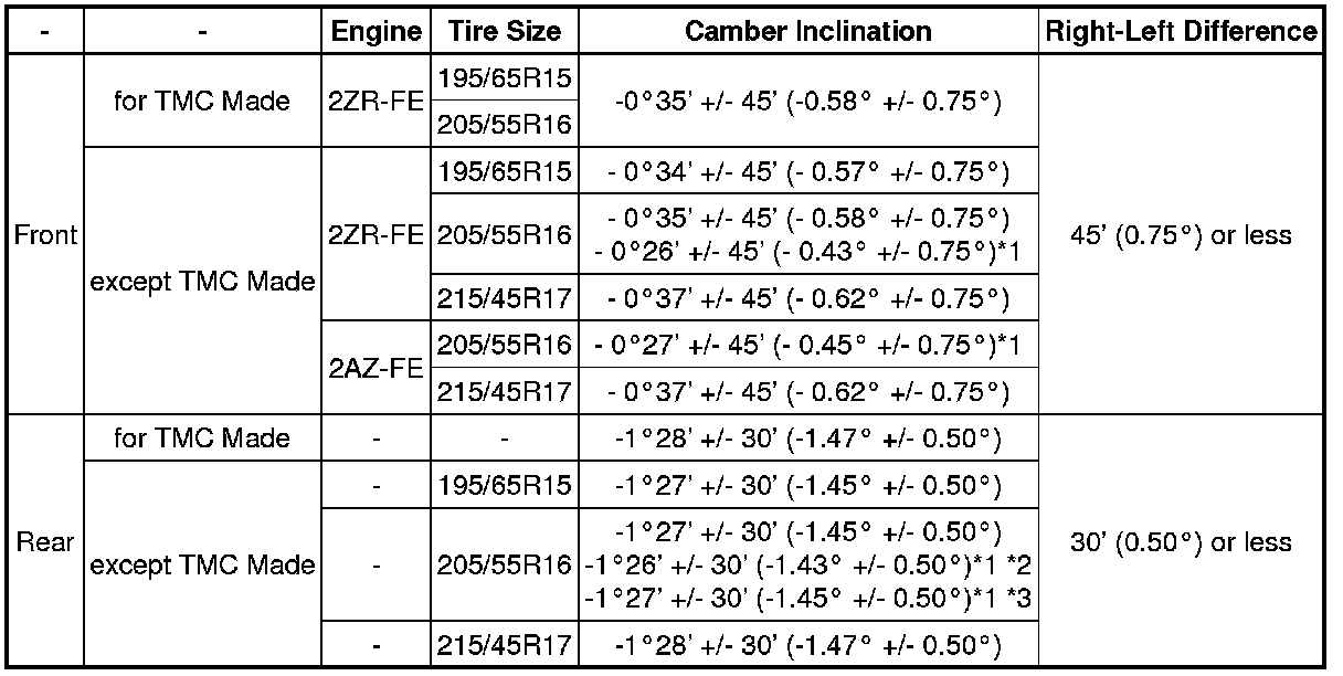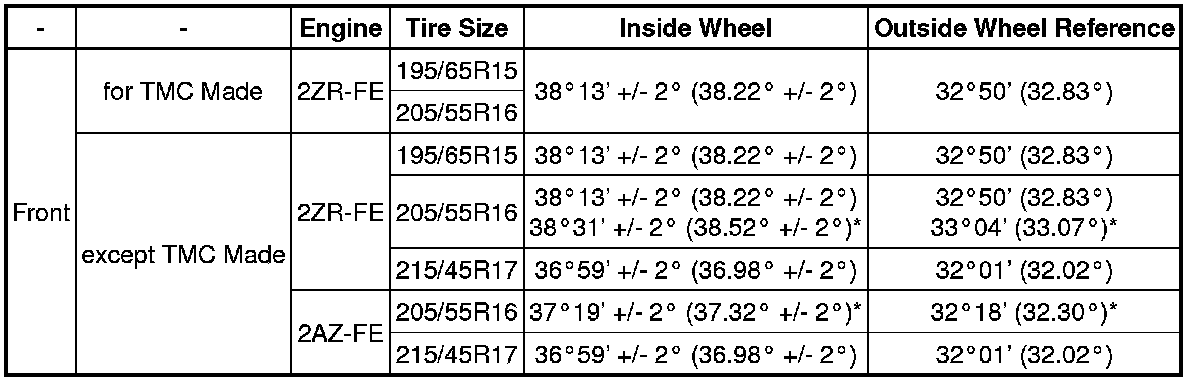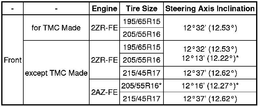 SPECIFICATIONS: ALIGNMENT / HANDLING DIAGNOSIS: SERVICE DATA; 2013 MY Corolla [07/2012 -]