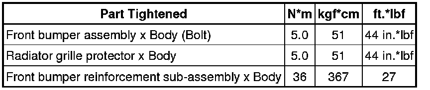 SPECIFICATIONS: EXTERIOR PANELS / TRIM: TORQUE SPECIFICATIONS; 2013 MY Corolla [07/2012 -]