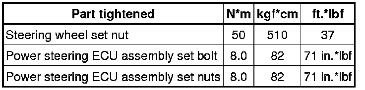 SPECIFICATIONS: POWER ASSIST SYSTEMS: TORQUE SPECIFICATIONS; 2013 MY Corolla [07/2012 -]